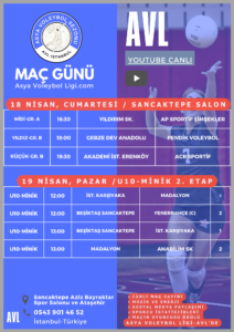 ASYA VOLEYBOL LİGİ’NDE U10-MİNİK KATEGORİ 2. ETAPTA HER TAKIM 2 VEYA 3 MAÇ OYNAYACAK OLUP, MAÇLAR ARASINDA BEKLEMEK ZORUNDA KALINABİLİR. BU SEBEPLE SPORCULARINIZ YETERİ KADAR SU VE ATIŞTIRMALIK GETİREBİLİR. MAÇLAR 19 NİSAN PAZAR GÜNÜ SAAT 12:00’DE BAŞLAYACAKTIR. DİĞER DUYURUMUZDAKİ 18-19 devamını oku…